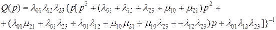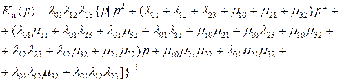 Таким образом, для нашей задачи вероятность пребывания резервированной системы в состоянии 3 или вероятность простоя в преобразовании Лапласа будет иметь вид