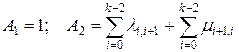 – сумма произведений интенсивностей переходов, взятых по i-1, за исключением тех членов, в которых содержатся произведения вида