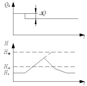 При нормальной работе регулятора уровня расход конденсата из ПВД, имеющего усредненную площадь парового пространства F, составляет Qk. При этом уровень находится вблизи заданного значения Hз. В динамическом отношении ПВД представляет собой интегрирующее звено с передаточной функцией