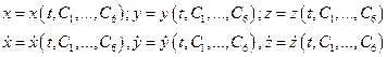 В задаче о движении точки в трехмерном пространстве общие решения будут содержать шесть произвольных постоянных: