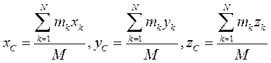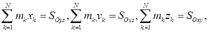 называют статическими моментами массы системы относительно координатных плоскостей. Отсюда имеем