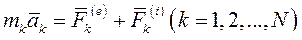 - равнодействующие внешних и внутренних сил, действующих на k -ю точку.
