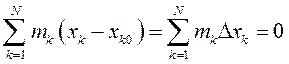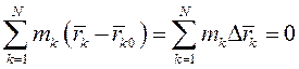 , т.е. центр масс в начальный момент времени находится в покое, то