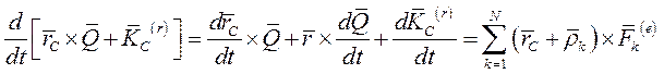 Пусть подвижная система координат CXYZ связана с центром масс и движется поступательно относительно неподвижной системы Oxyz. Согласно теореме об изменении главного момента количеств движения системы относительно центра О для абсолютного движения механической системы,