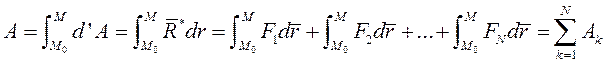 в текущее положение М равна алгебраической сумме работ составляющих сил на том же перемещении: