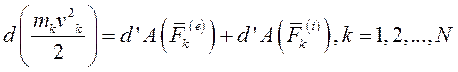 Суммируя левые и правые части этих уравнений по всем точкам системы и вынося знак дифференциала за знак суммы, получаем