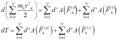 Первая производная по времени от кинетической энергии системы равна сумме мощностей всех внешних и внутренних сил, действующих на точки системы