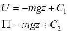 Рассмотрим материальную точку массой m, находящуюся в однородном поле силы тяжести. Направим ось Oz вертикально вверх, а оси Ox и Oy произвольно в горизонтальной плоскости.