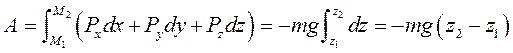 Где А – работа силы тяжести материальной точки массой m на перемещении