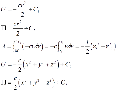 Таким образом, силовая функция и потенциальная энергия линейной силы упругости является квадратичной формой координат точки М, отсчитываемых от положения равновесия.