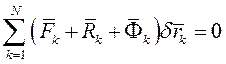 Рассмотрим систему из N мат. точек. В соответствии с принципом Даламбера, приложенные к каждой точке активные силы, реакции связей и силы инерции в любой момент времени образуют уравновешенную систему сходящихся сил. Эта система удовлетворяет условию равновесия