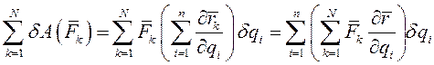 Рассмотрим возможную работу сил, приложенных к точкам системы