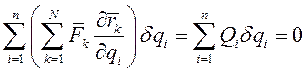 Для равновесия системы, подчиненной голономным удерживающим связям, необходимо и достаточно, чтобы обобщенные силы, соответствующие всем обобщенным координатам системы, были равны нулю.