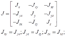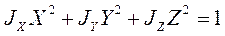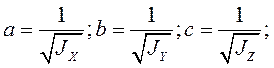 Если оси координат направить по взаимно перпендикулярным главным осям эллипсоида инерции (OX, OY, OZ), то его уравнение будет иметь вид
