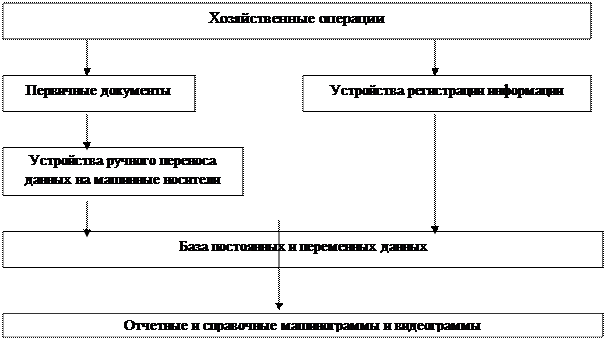 В общем виде данной форме учета свойственна такая последовательность обработки информации: машинный носитель информации – ЭВМ – машинограммы выходной информации.