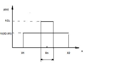 Используя информационный подход, рассчитаем погрешность измерения, имеющую место при использовании измерительного прибора с диапазоном измерения от X1 до X2. Будем считать, что вероятность попадания результата до и после измерения распределена в соответствии с равновероятностным законом.