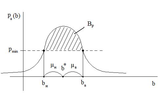 В данном случае мерой Лебега становится доверительный интервал, ширина которого определяется pmin – минимальным значением вероятности: