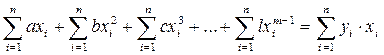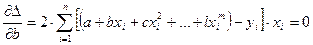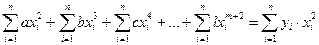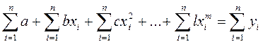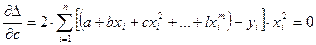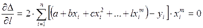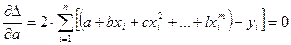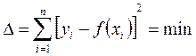 Параметры полинома должны быть подобраны таким образом, чтобы cумма квадратов отклонений между экспериментальными и теоретическими значениями была минимальна