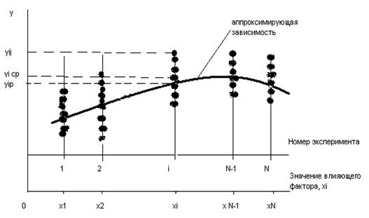 – среднее значение в i -м эксперименте; yip – значение, определенное с помощью аппроксимирующей зависимости