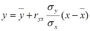 Например, при установлении тесноты взаимосвязи между фактором x и выходным параметром y приближенная линейная зависимость может быть аппроксимирована уравнением регрессии