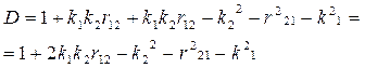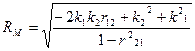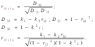 Например, совокупный коэффициент корреляции, определяющий степень влияния двух факторов на выходную функцию, может быть определен так