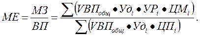 МЕi1=∑(УРi1*ЦМi1): ЦПi1*100.