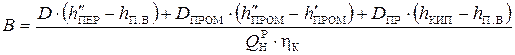 где D, DПРОМ=(0,85¸0,9)×D, DПР=(0,01¸0,02)×D – расход первичного и промежуточного пара, расход продувочной воды (учитывается только для барабанных котлов), кг/с;