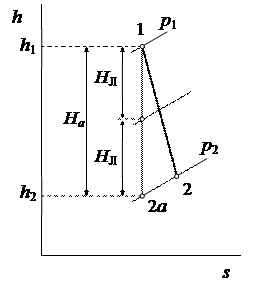 На диаграмме h-s этот процесс для одной ступени имеет вид отрезка 1-2а (адиабатное истечение), а с учетом потерь – 1-2.