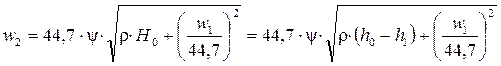 Относительная скорость выхода пара из канала между рабочими лопатками: