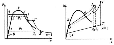 Таким образом, из каждого килограмма пара α кг совершает цикл 1–2ОТ–4ОТ–5–6–1 и удельная работа этой части (если считать расширение в турбине изоэнтропным) составит
