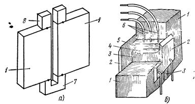 Сущность: ЭШС – сварка плавлением, при которой используется теплота, выделяющаяся при прохождении электрического тока через расплавленный электропроводный шлак. Расплавленный шлак удерживается в колодце, который образован кромками детали и специальными формирующими водоохлаждаемыми устройствами – ползунами. За счет разности плотности электродный металл опускается на дно сварочной ванны, образуя металлическую ванну. Капли электродного металла, проходя через расплавленный шлак улучшают химический состав. Расплавленный шлак, находясь в верхней части ванны исключает воздействие окружающей среды. Электродная проволока вводится прямо в шлаковую ванну и там плавится, дуговой разряд отсутствует. По мере повышения уровня металлической ванны за счет расплавленного электродного металла, повышается уровень и шлаковой ванны. Поднимаются водоохлаждаемые ползуны на специальной подвеске и подающий механизм электрода. В нижней части металлической ванны жидкий металл охлаждается, за счет теплоотвода в основном металле и водоохлаждаемые ползуны, и кристаллизуется. Процесс начинается во входном кармане, а заканчивается на выводных планках, которые затем срезаются, так как в начале и конце шва могут быть дефекты.