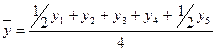 Для определения индекса сезонности производится выравнивание исходного ряда по скользящей средней. Период скольжения равен пяти кварталам. Скользящая средняя рассчитывается по средней хронологической. То есть первое значение скользящей средней будет получено:
