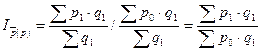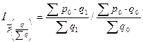 Индексируемой величиной является физический объем продаж, поэтому в числителе объем продаж берется на уровне отчетного периода, а в знаменателе – базисного, а вес (цена) остается неизменной (на уровне базисного периода). В целом числитель индекса – это экономический показатель, характеризующий фактический объем продаж в неизменных сопоставимых ценах. Знаменатель – товарооборот базисного периода (объем продаж).