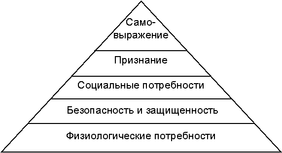 Для мотивации по потребностям А. Маслоу в 40-е гг. предложил использовать иерархию потребностей, представляющую собой пирамиду, в основании которой располагаются первичные потребности (физиологические), а на втором уровне – потребности в безопасности и защищенности. Далее, по возрастающей, он расположил социальные потребности, потребности в признании и самовыражении.