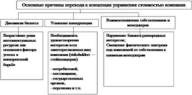Основные причины перехода к концепции управления стоимостью компании представлены на следующей схеме: