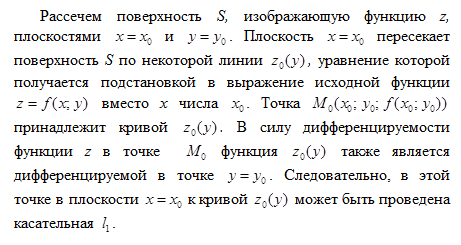 Рассмотрим одно из геометрических приложений частных производных функции двух переменных. Пусть функция