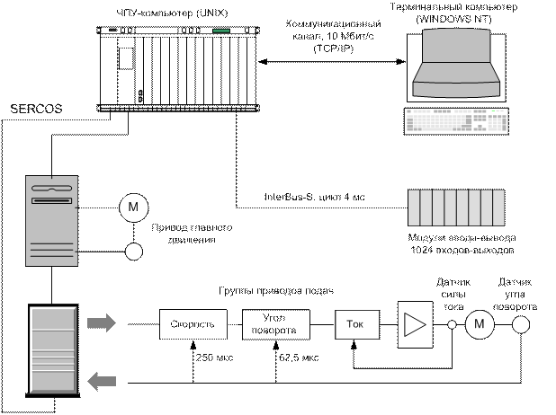 · одну или несколько групп цифровых (SERCOS) поводов подачи и главного привода.