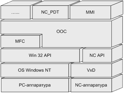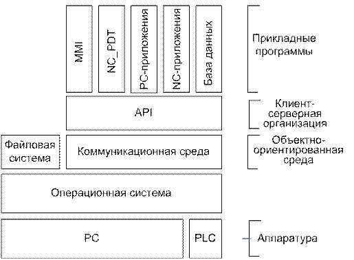 Выше API-слоя расположен объектно-ориентированный сервер, который создает фундамент для приложений в системе PCNC.