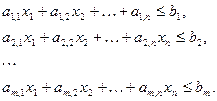 К системе (8) также должны быть добавлены естественные ограничения на неотрицательность компонентов плана производства: x1≥0,…xj≥0,…,xn≥0, или, что то же самое,