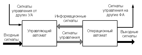 Функциональный автомат (ФА) представляет собой совокупность управляющего автомата (УА) и операционного автомата (ОА). Структурная схема функционального автомата представлена на рисунке 2.4.