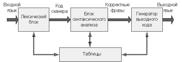Код сканера позволяет восстановить или распределить введенную информацию при проведении синтаксического анализа, когда определяется правильность структуры кадра, а также при проведении семантического анализа, когда определяется содержание задачи. Сформированные при этом корректные фразы поступают на генератор выходного кода, который формирует с помощью операционного автомата сигналы управления объектом.