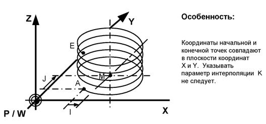 В современных системах ЧПУ наименование осей может быть иным, нежели X, Y и Z. В этом случае выбор плоскости и назначение параметров интерполяции осуществляют в соответствии с классификацией осей, зафиксированной в машинных параметрах) согласно следующей схеме: