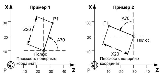 Программирование в полярных координатах, от G10 до G13. При программировании в полярных координатах положение точки определяется через радиус и угол. Полюс и плоскость координат задают с помощью инструкции G20.