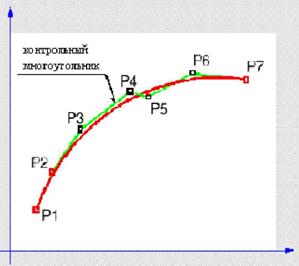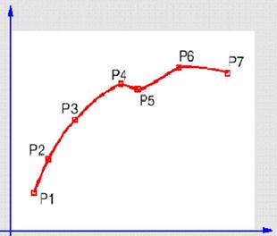 С этими сплайнами запрограммированные точки служат контрольными для создаваемой кривой. Кривая только прилегает к этим точкам, а не проходит напрямую через них. BSPLINE применяется для аппроксимации рельефных поверхностей.