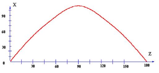 Рассмотрим для примера профиль обработки в виде части синусоиды от 0 до 180º, показанный на рисунке 4.27.