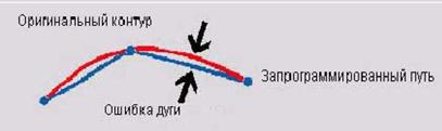 Использование новых возможностей УЧПУ оказывает существенное влияние, как на исходную технологическую программу, так и на обрабатываемую деталь. На рисунке 4.28 видно, что аппроксимация дуги линейными функциями приводит к образованию погрешности обработки.