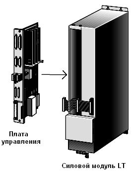 Приводной модуль является, по сути, частотным преобразователем. Он включает в себя силовой модуль (мостовую схему с шестью IGBT транзисторами) и плату управления, которая формирует управляющие импульсы для силового модуля. Плата управления вставляется в силовой модуль, как показано на рисунке 6.11.
