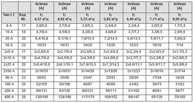 Далее производится выбор силового модуля (LT). Основными параметрами для выбора силового модуля являются: номинальный ток двигателя