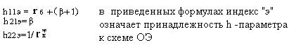 Для транзисторов чаще всего используются h-параметры,наиболее удобные для измерений.Система уравнений,связывающая напряжения и токи с h-параметрами имеет вид: