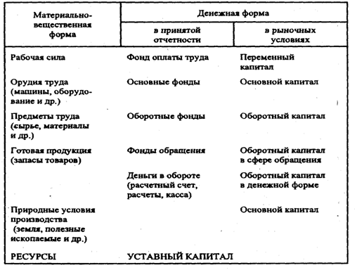 Производственно-экономическая деятельность любого предприятия начинается с формирования производственных ресурсов - в натуральной и денежной формах (табл. 5). Приведенные ресурсы различаются между собой как по назначению, так и по времениихиспользования.